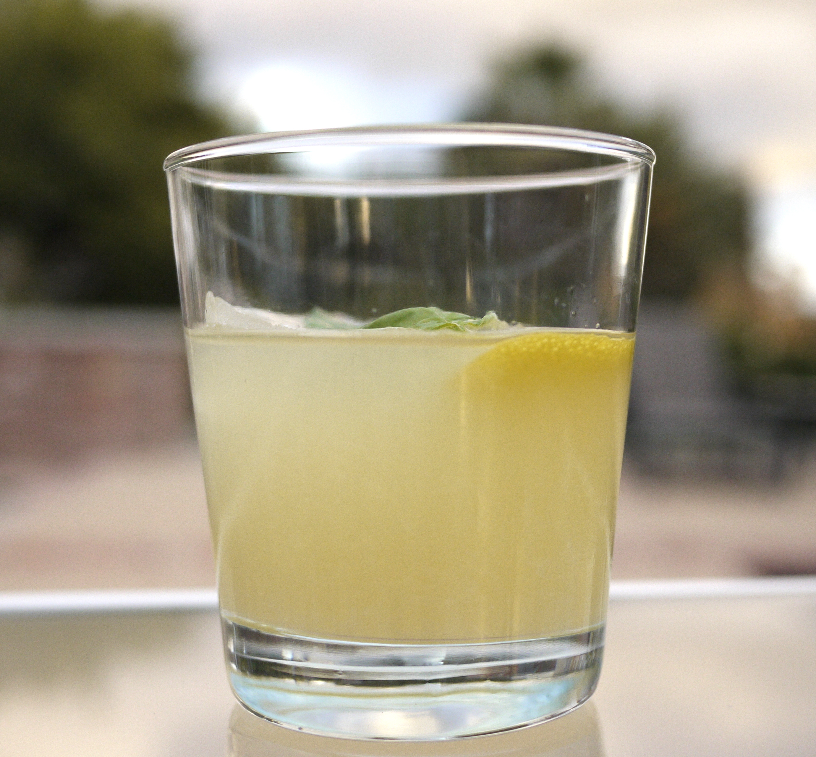 - Lemon twist and basil leaf