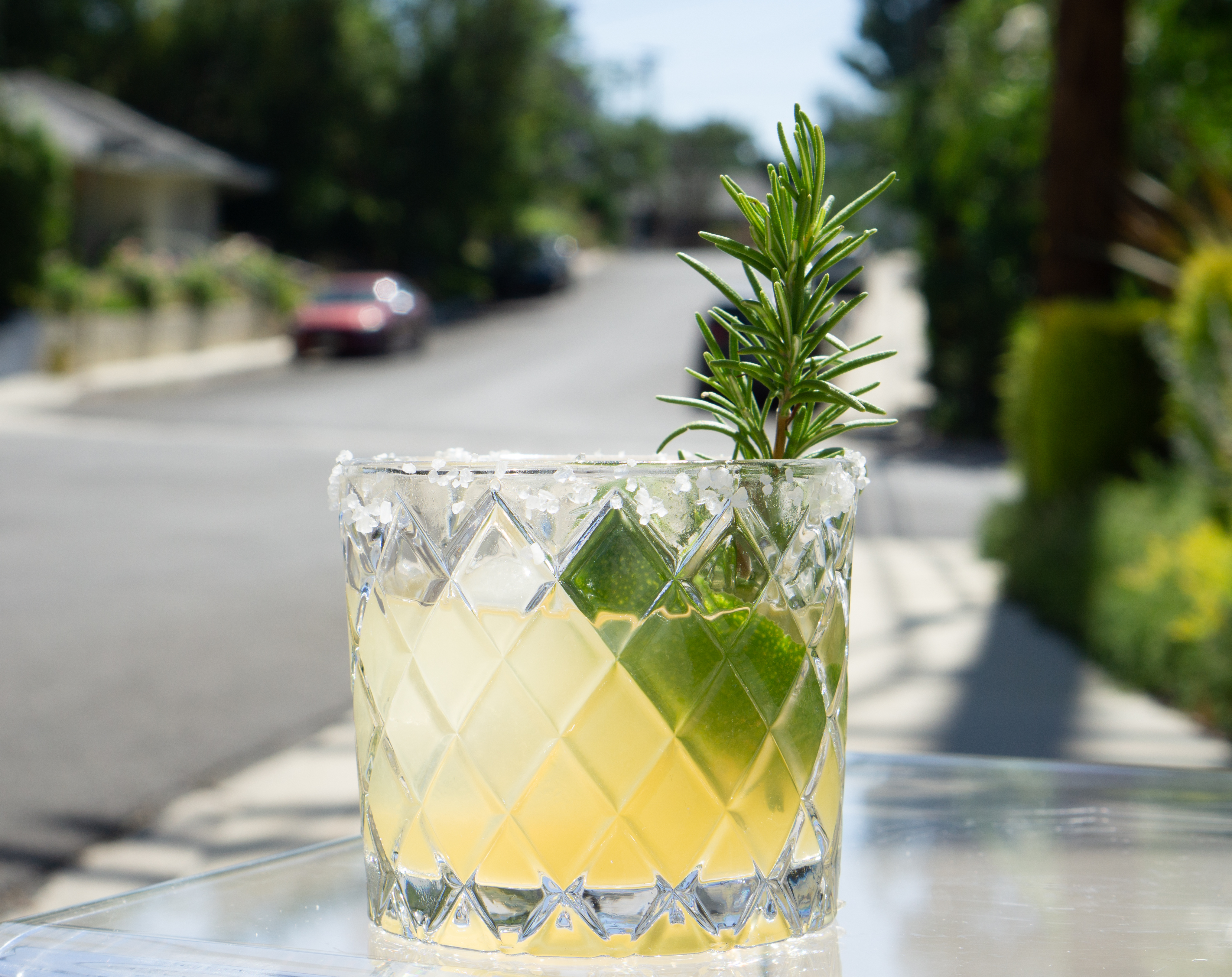 Most of our trips recently have been local stay-cations: our most recent one was a night in Malibu. We stayed at the Surfrider, which is a small hotel directly on the Pacific Coast Highway. It has a guests-only rooftop restaurant with ocean views (see picture below) and a farm-to-table menu. They make this cocktail with Amaro Angeleno from local Ventura Spirits, combined with smoky mezcal, citrus, and rosemary (which grows like a weed here) — perfect for an LA woman, or anyone from LA really! We got the recipe from the bartender and just reduced the agave from 3/4 oz. to 1/2 oz.