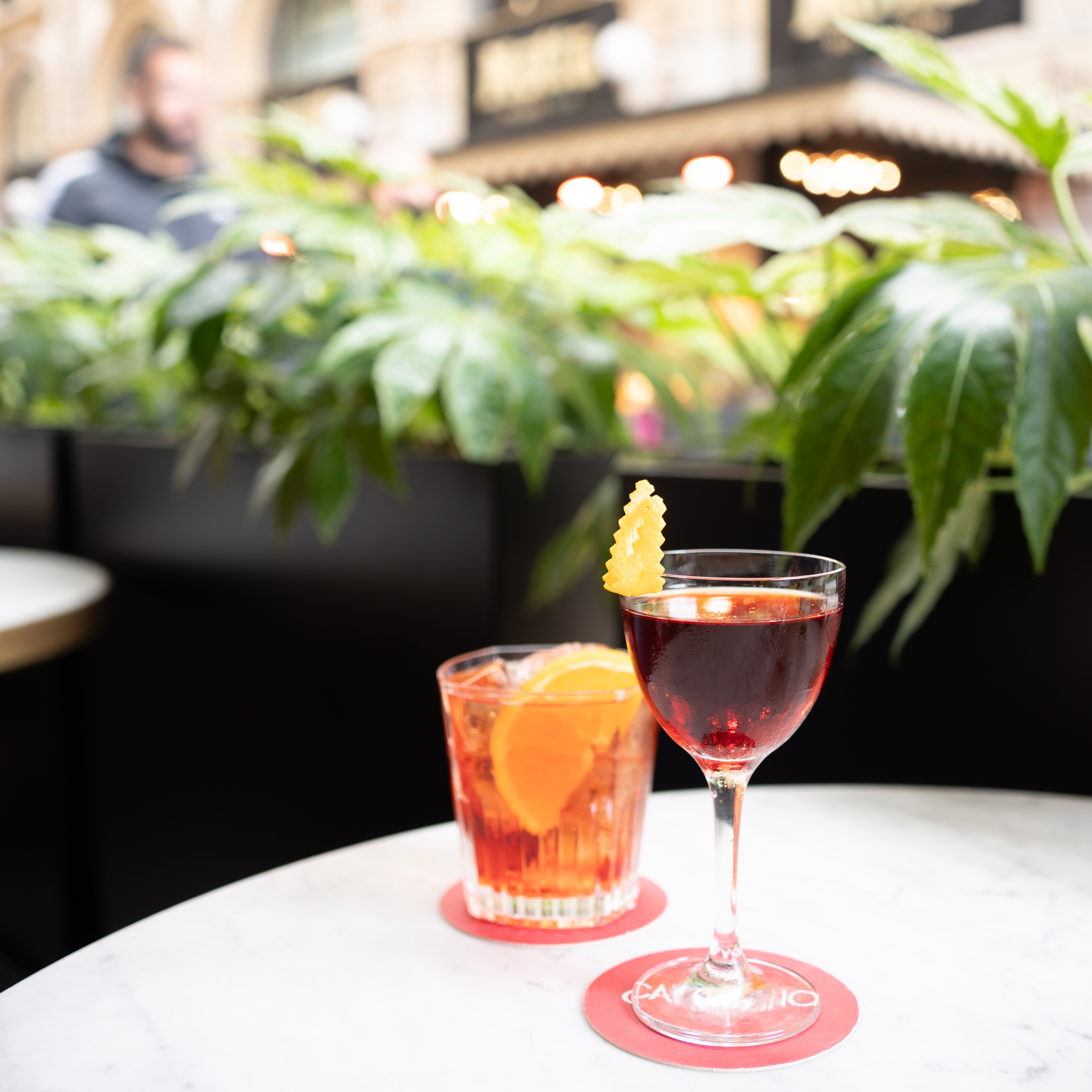 We recently got back from a trip to Italy! One of our stops there was the city of Milan, where the company behind Campari has their own bar, Camparino. The bar is located in the Galleria Vittorio Emanuele II, a historic shopping mall that’s worth visiting for the architecture alone. Gaspare Campari opened a cafe there in 1867; today’s Camparino is across the corridor from that location.